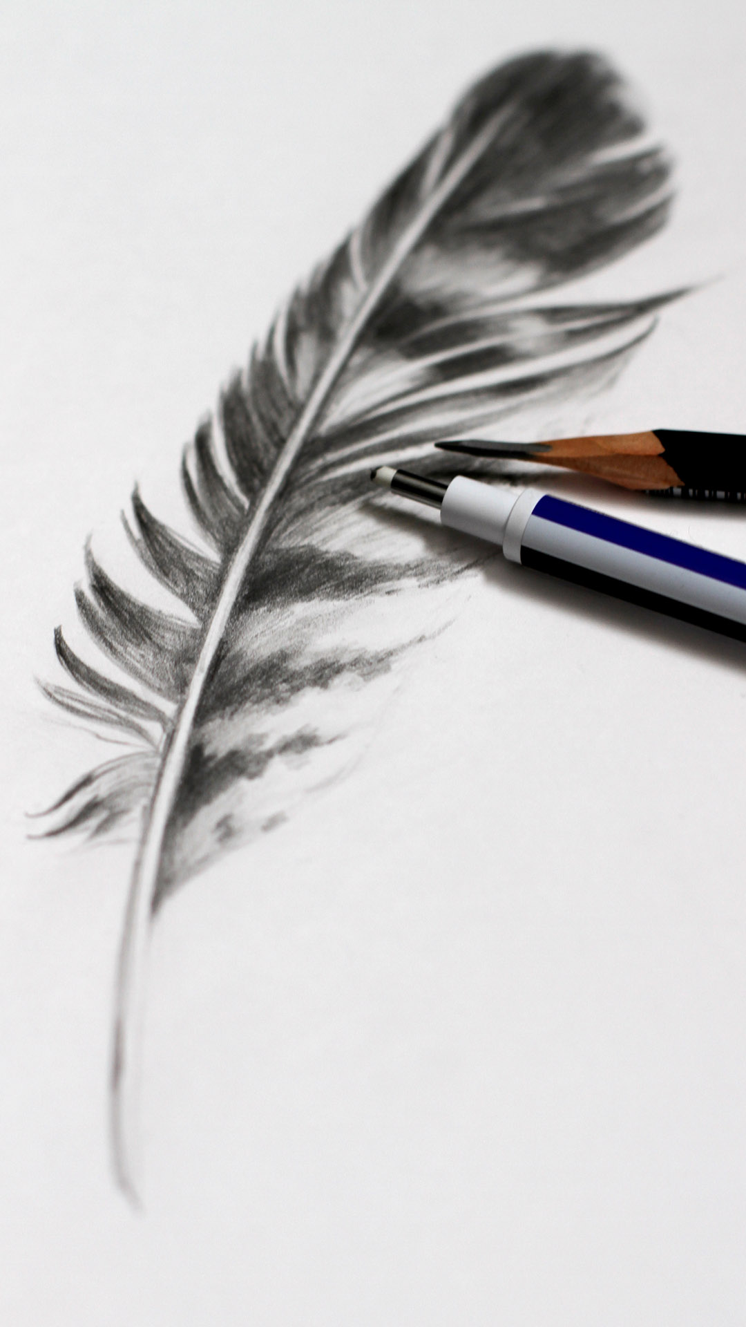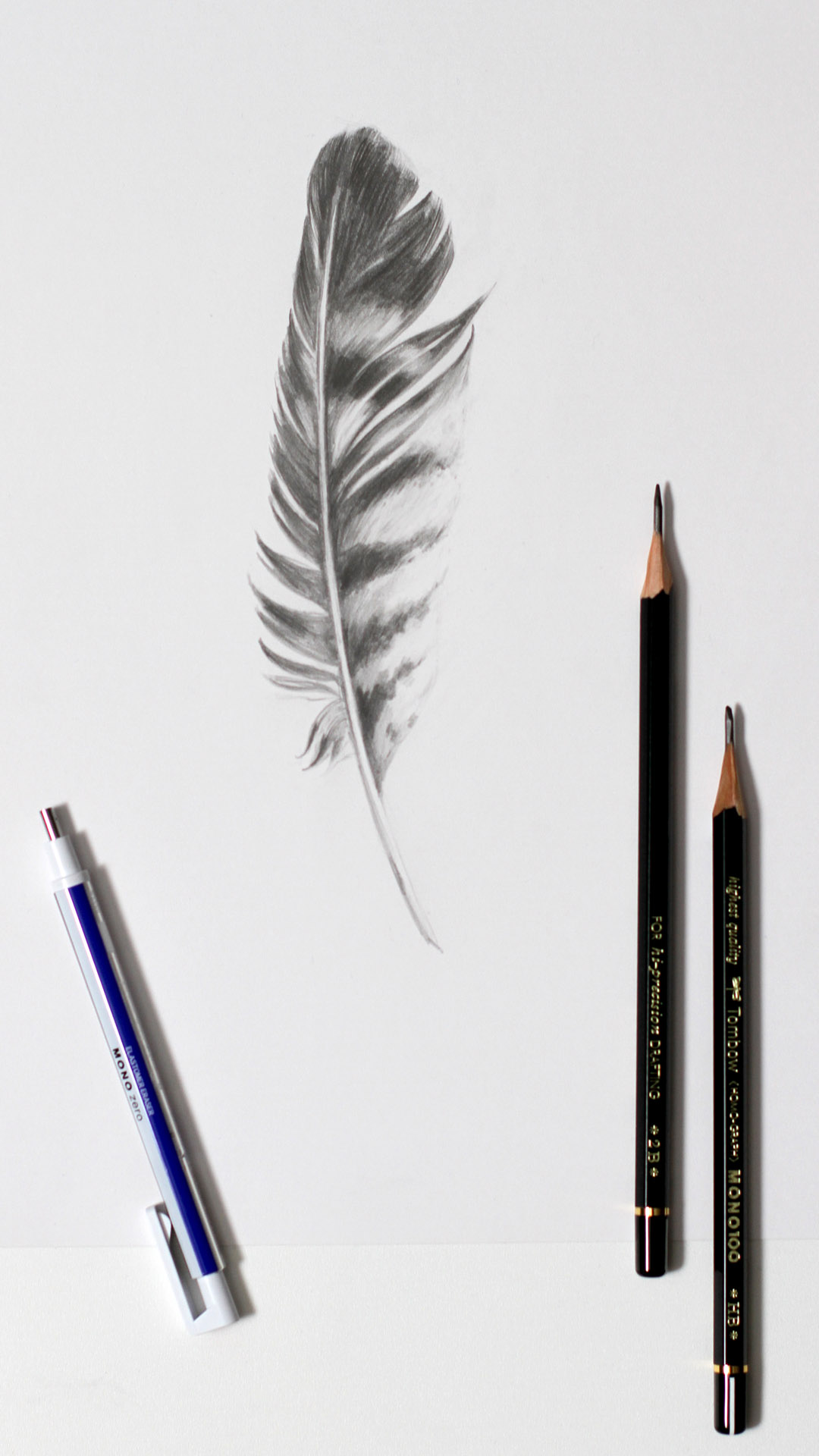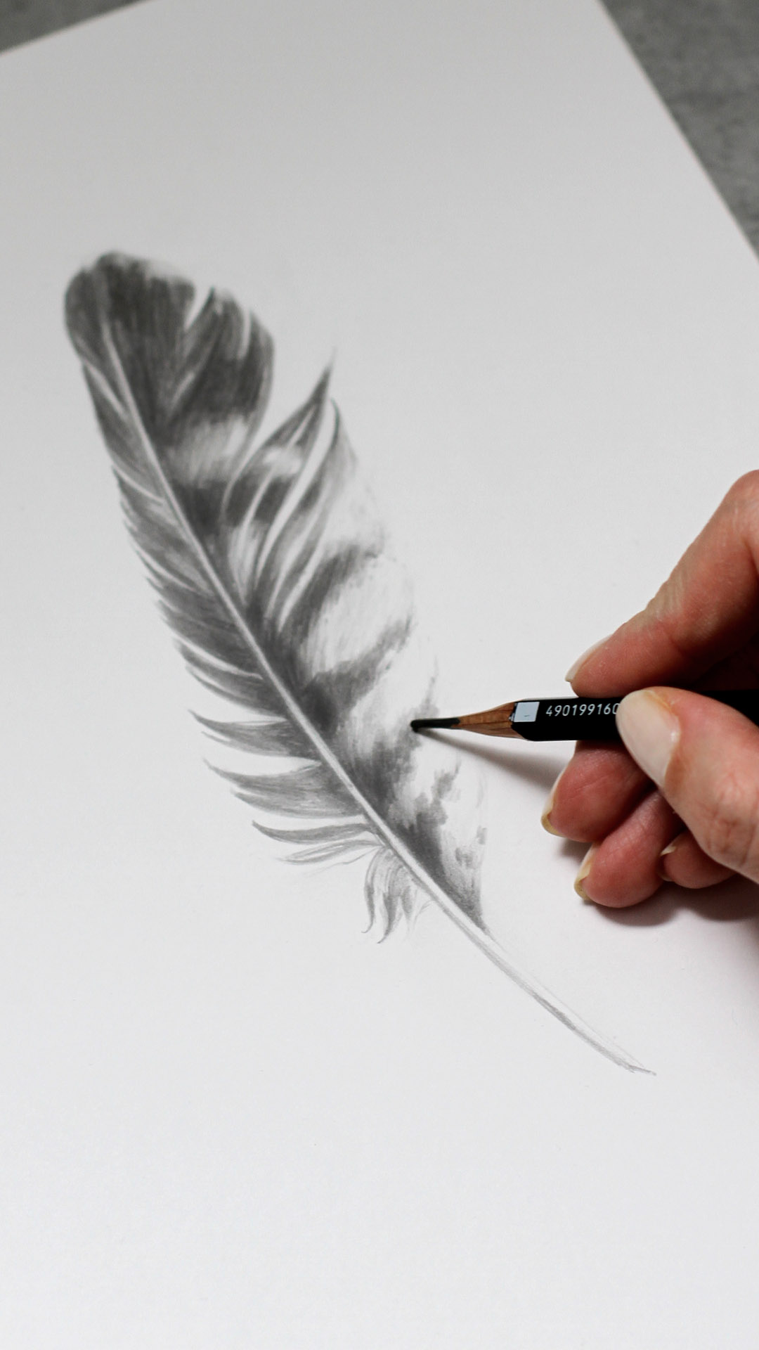 Feine Strukturen, weiche Übergänge und ruhige Schattierungen machen diese realistische Federzeichnung besonders aus. Vom zarten Kiel bis zu den sanft verlaufenden Federästen entsteht Tiefe durch kontrollierte Grauabstufungen und präzise Linienführung.