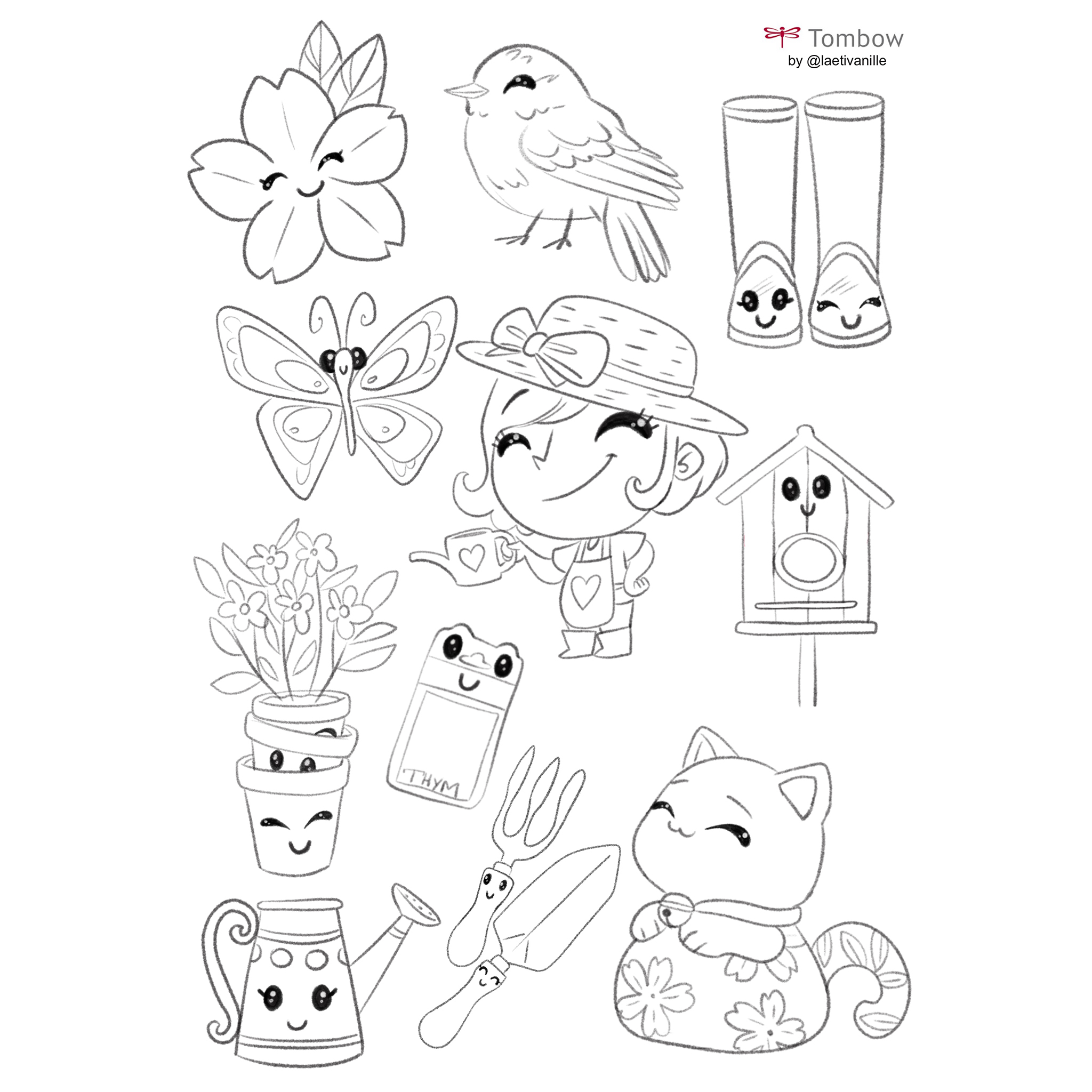 Mit unseren liebevoll gestalteten Gardening Doodles bringst du frische Garten-Vibes in dein Bullet Journal, deine Karten oder dein Scrapbook. Ob niedliche Blümchen, kleine Gartentools oder verspielte Tierchen – die Motive lassen sich ganz einfach ausdrucken, ausmalen und kreativ einsetzen.