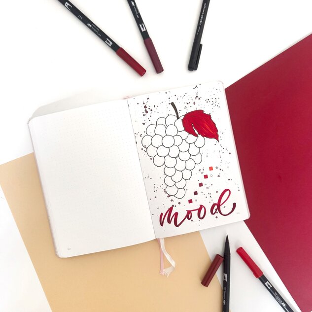 Jede Traube steht für deine Stimmung und füllt sich Tag für Tag mit sanften Weinrot- und Beerentönen. So verwandelt sich dein Bullet Journal nach und nach in eine stimmungsvolle Traube – ein Spiegel deiner Gefühle.